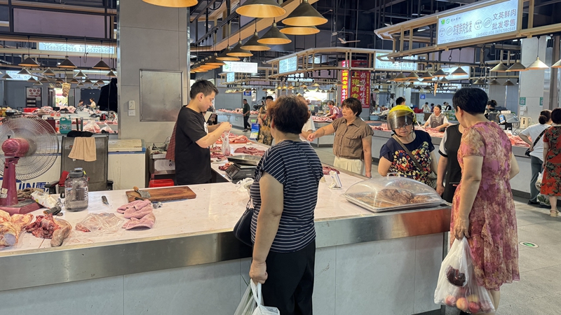 7月11日,數(shù)輛旅客大巴駛?cè)朕r(nóng)批市場(chǎng),來自上海的旅客成群結(jié)對(duì)地在市場(chǎng)內(nèi)參觀采購(gòu)。從綜合交易區(qū)到蔬菜批發(fā)區(qū),旅客們邊逛邊買,新鮮實(shí)惠的牛羊肉、時(shí)鮮蔬菜、火腿酥餅都是他們的購(gòu)物首選。“聽說浦江農(nóng)批市場(chǎng)品種齊全、蔬菜肉類品質(zhì)都很好,價(jià)格還實(shí)惠,我們特意要求導(dǎo)游安排過來逛逛。這里煙火氣十足,買東西很放心。”旅行團(tuán)中一名老伯說道。