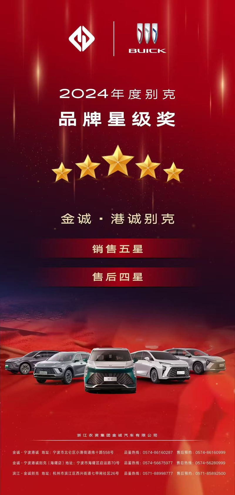近日,2024年上汽通用汽車星級獎評定出爐,金誠汽車旗下多家凱迪拉克、別克4S店榮獲銷售、售后五星獎等多個獎項。其中,寧波凱迪與金誠凱迪獲銷售、售后五星獎,臺州卡迪獲售后五星、銷售四星獎,寧波港誠獲售后三星獎;港誠別克獲銷售五星、售后四星獎。